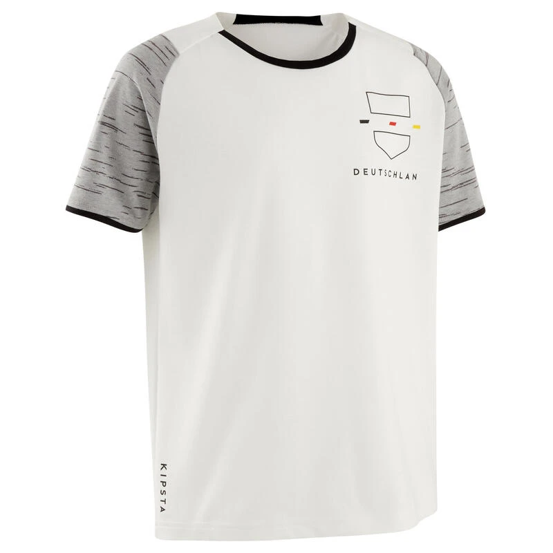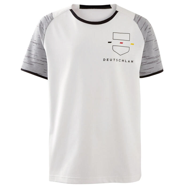 Met het volgende wereldkampioenschap voetbal in het vooruitzicht, stelt onze designer dit shirt FF100 voor, met moderne en aansluitende snit en gemêleerde nuances bovenaan, die het een erg elegante casual look geven. Zo kan je kind in de kleuren van zijn favoriete team spelen.