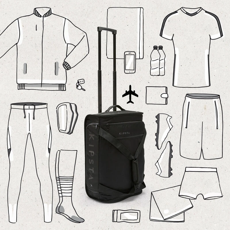 Deze sporttas op wieltjes is ontwikkeld conform de IATA-normen en geschikt om te worden meegenomen als handbagage. We raden aan om bij je luchtvaartmaatschappij te informeren wat de bij hen geldende regels i.v.m. de afmetingen en het gewicht van de handbagage zijn.