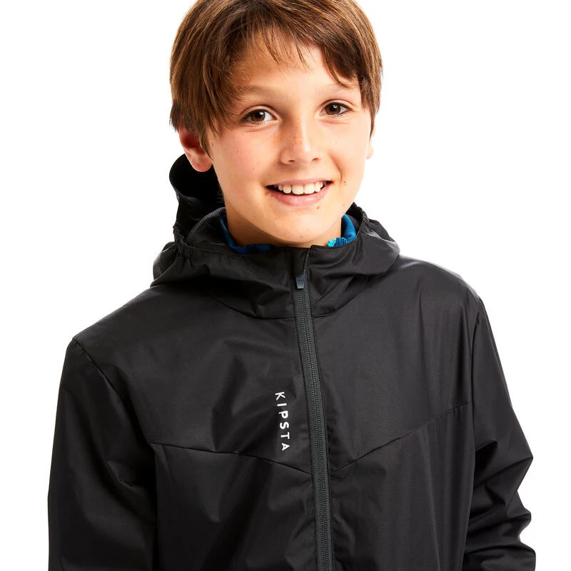 Toen we jonge voetballertjes observeerden op het veld, in regen en wind, beslisten we om dit regenjack T500 te ontwikkelen voor de training en opwarming. Dit regenjack T500 voor kinderen moest in de eerste plaats waterdicht en sterk zijn, en uiteraard een design hebben dat perfect geschikt is om te voetballen. De netstof voering zorgt voor een goede verluchting. De jas heeft ook 2 handige steekzakken met rits opzij.
