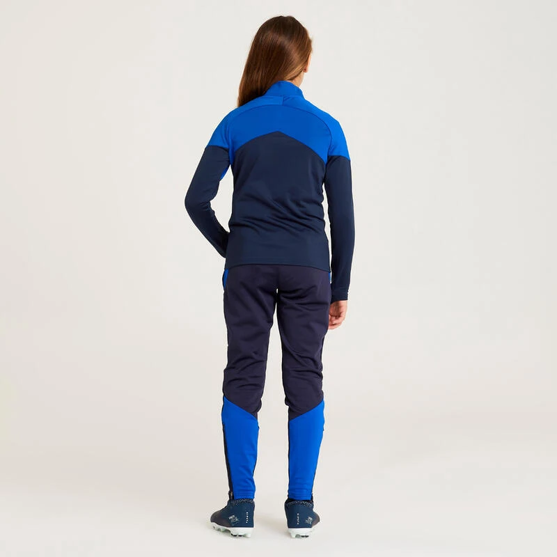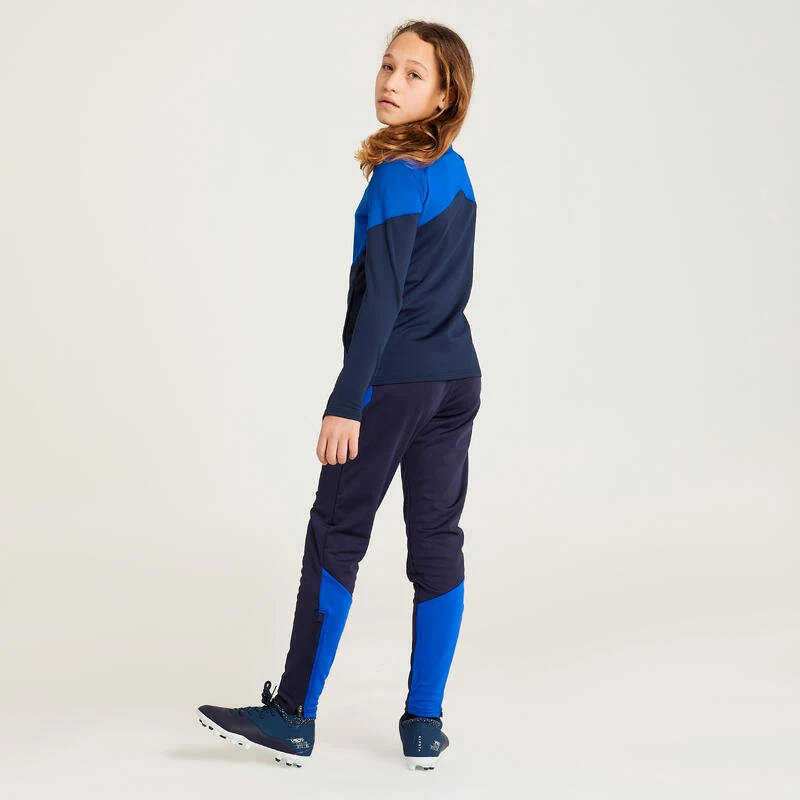 Kipsta VOETBALSWEATER VOOR KINDEREN CLR HALVE RITS MARINEBLAUW/FLUOGEEL