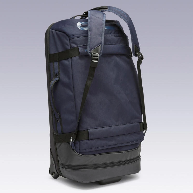 Tas op wieltjes die je ook op de rug kunt dragen.